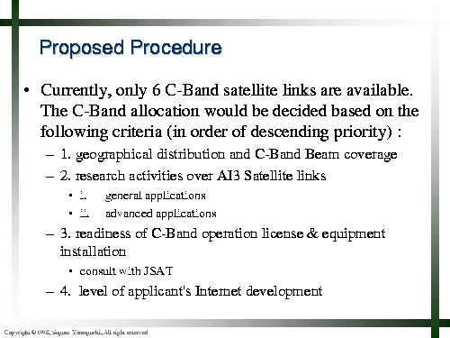 C-band site selection, Suguru Yamaguchi: Slide 4 of 8.
